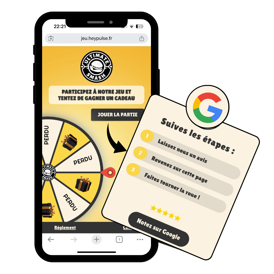 Demandez à vos clients de laisser un avis sur Google avant de jouer.