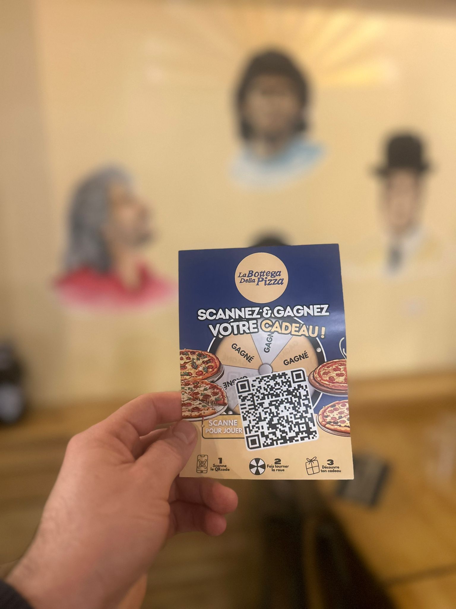 Notre équipe se charge de concevoir un flyer personnalisé à votre image, intégrant un QR code qui redirige directement vers votre page de jeu. Offrez à vos clients la possibilité de tourner la roue et de tenter leur chance pour gagner un cadeau, grâce au support visuel conçu spécialement pour vous par notre équipe.